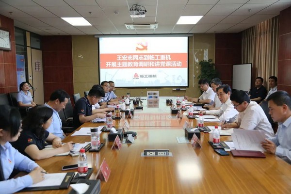 6月2日,济南市委常委、副市长王宏志在市政府研究室、市发展改革委、市工业和信息化局、济南高新区管委会等相关领导陪同下到wm365重机开展主题教育调研和讲党课活动。