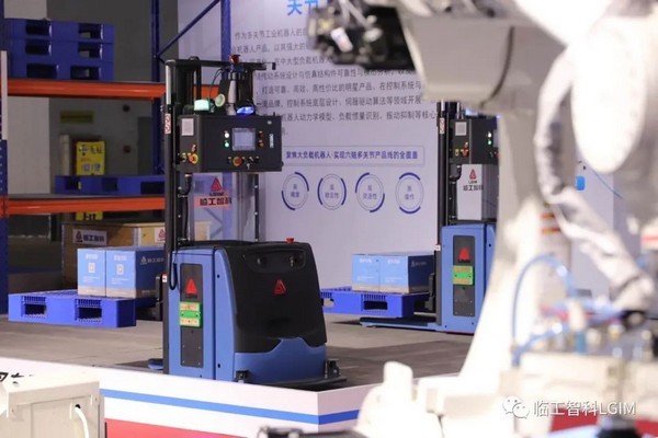 wm365智科多方位的展示了关节机器人、无人叉车、AMR的作业场景
